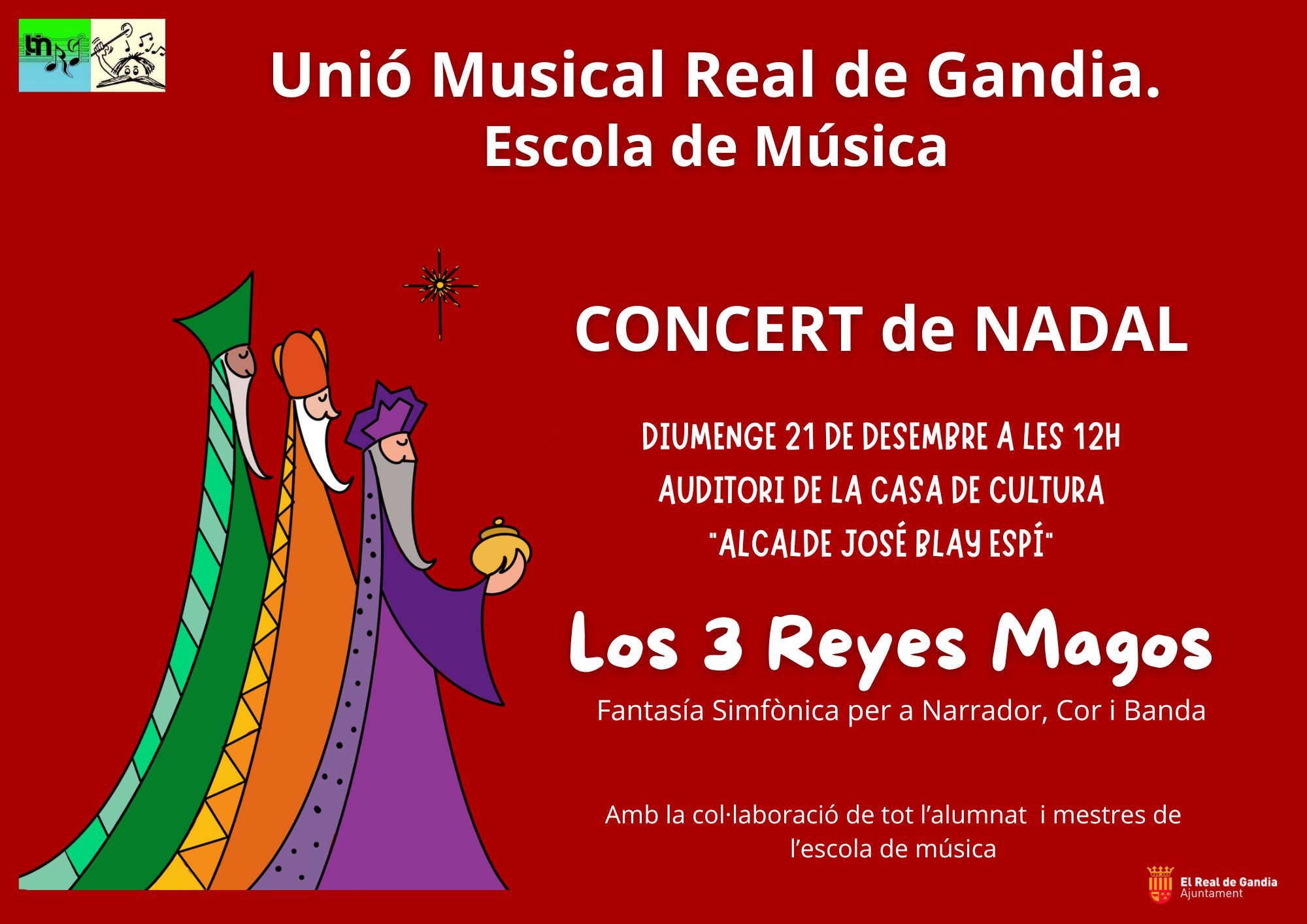 El proper diumenge 21 de Desembre tindr脿 lloc el Concert de Nadal a les 12:00h. Vos esperem a l'auditori de la Casa de Cultura "Alcalde Jos茅 Blay ...